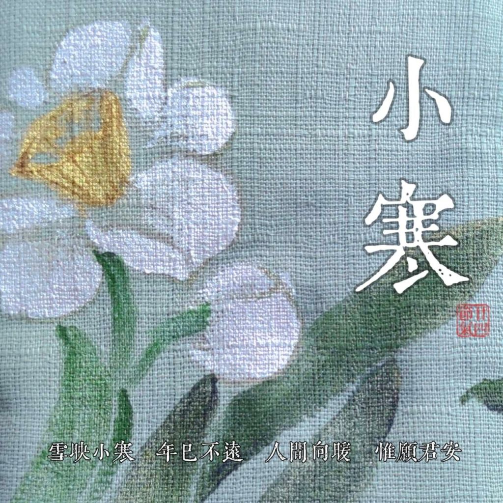 小寒作為「二十四番花信風」的起點,也正是因為這一時節陽氣漸盛,所以雖然氣溫極低,卻也有各種花陸續盛開,帶來生機。小寒節氣三候為一候梅花,二候山茶,三候水仙。梅花高潔,山茶富貴,水仙清雅。水仙多為家中水養,一球抽三五枝花莖,開四五朵白花,風姿綽約,雅號“凌波仙子”。文震亨《長物志》說水神馮夷服此花八石,由此得名“水仙”。不論是踏雪尋梅,還是在家中觀賞水仙,都為小寒增添不少雅韻。